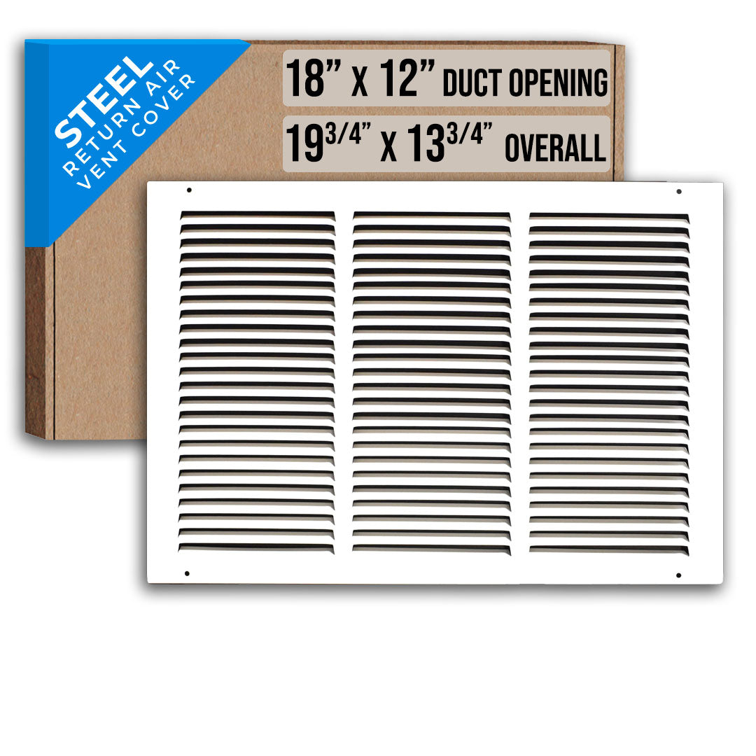 18" X 12" Steel Return Air Grille | HVAC Vent Cover Grill for Sidewall and Ceiling, White | Outer Dimensions: 19.75"W X 13.75"H for 18x12 Duct Opening
