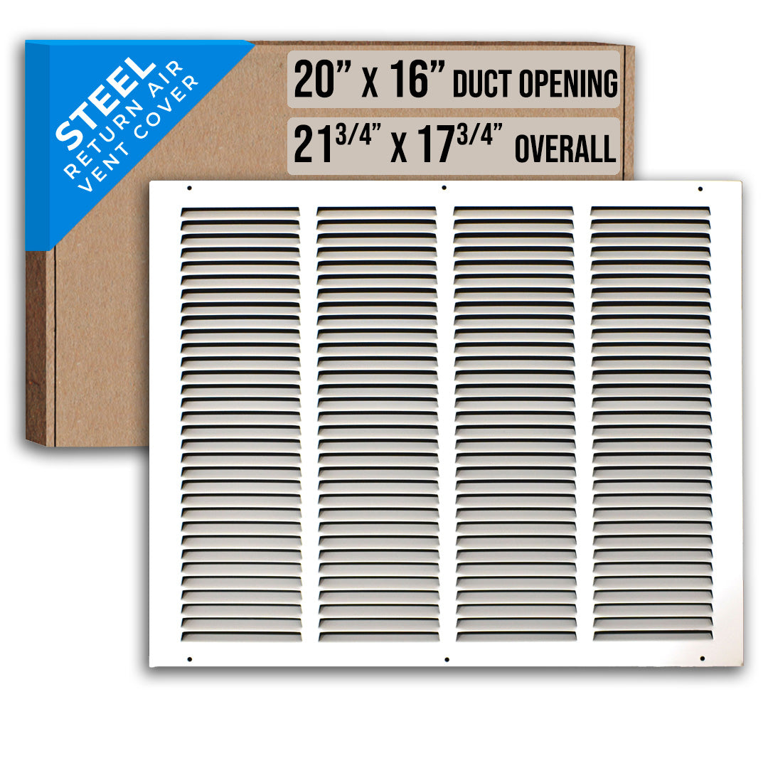 20" X 16" Steel Return Air Grille | HVAC Vent Cover Grill for Sidewall and Ceiling, White | Outer Dimensions: 21.75"W X 17.75"H for 20x16 Duct Opening