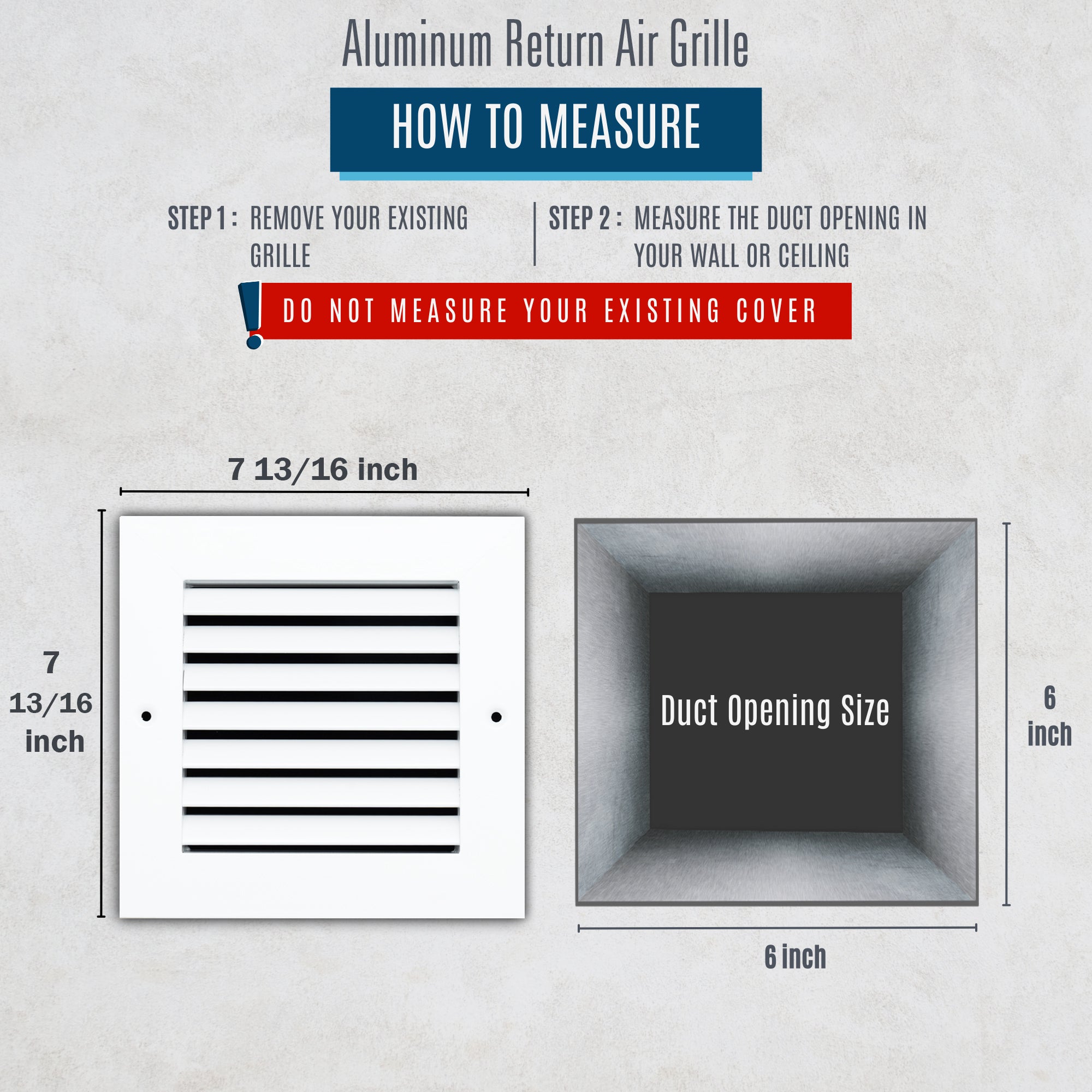 Enhance your space with our PREMIUM ALUMINUM VENT COVER, designed for optimal airflow and modern style. Crafted from high-quality aluminum with a durable powder-coated finish, this lightweight and rust-resistant vent cover ensures long-lasting performance in residential or commercial settings. Its sleek design features linear curved fins angled at 45 degrees, maximizing airflow while minimizing noise for quiet, efficient ventilation. The contemporary finish resists scratches, flaking, and fading, complementing any décor. Sizing is simple: measure your duct opening, as the listed size corresponds to the wall or ceiling opening dimensions, with outer grille dimensions 1 13/16" larger for a perfect fit. Suitable for sidewall or ceiling installations, this vent cover includes screws for hassle-free mounting, offering an effortless way to improve ventilation and air quality in your space.